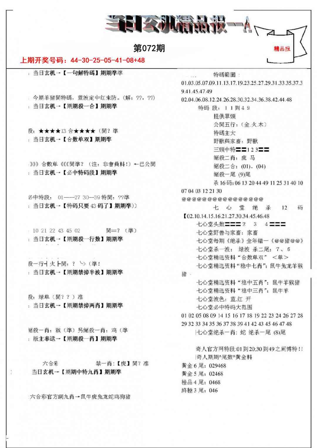 当日玄机精品报A